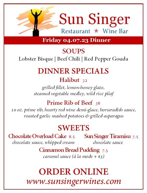 Friday, April 7th Dinner OYSTER WEEK! STARTS FRIDAY, APRIL 14TH- NEED DELIVERY? ORDER THROUGH TOAST! - Rick CarbaughApril 7, 2023 Facebook0 Twitter Pinterest0 0 Likes
