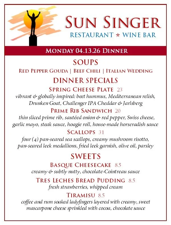 Monday, April 13th Dinner oyster week! starts friday, april 17th- ORDER ONLINE THROUGH TOAST! - Rick CarbaughApril 13, 2026 Facebook0 Twitter Pinterest0 0 Likes