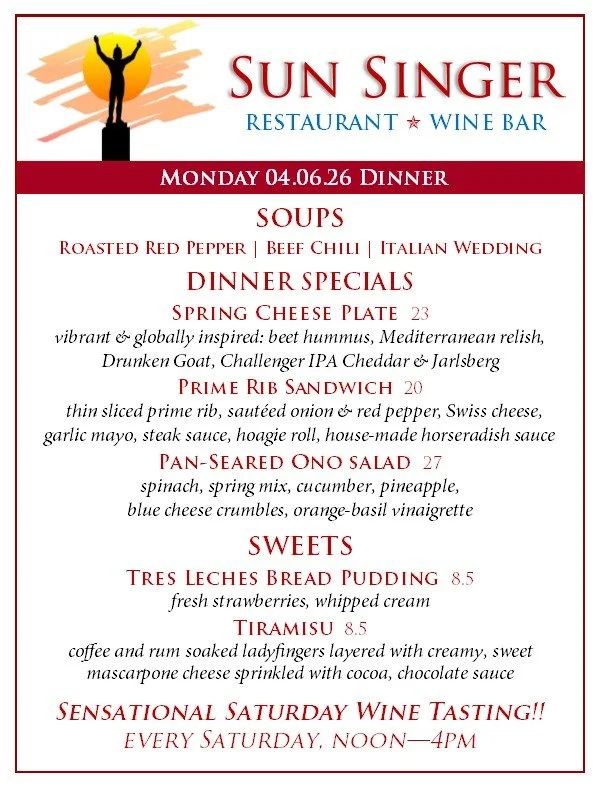 Monday, April 6th Dinner - ORDER ONLINE THROUGH TOAST! - Rick CarbaughApril 6, 2026 Facebook0 Twitter Pinterest0 0 Likes