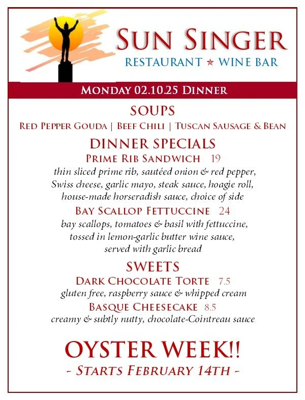 Monday, February 10th Dinner Oyster Week! returns February 14th - 22nd- NEED DELIVERY? ORDER THROUGH TOAST! - Rick CarbaughFebruary 10, 2025 Facebook0 Twitter Pinterest0 0 Likes