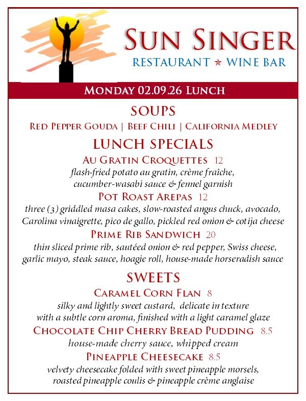 Monday, February 9th Lunch - ORDER ONLINE THROUGH TOAST! - Rick CarbaughFebruary 9, 2026 Facebook0 Twitter Pinterest0 0 Likes