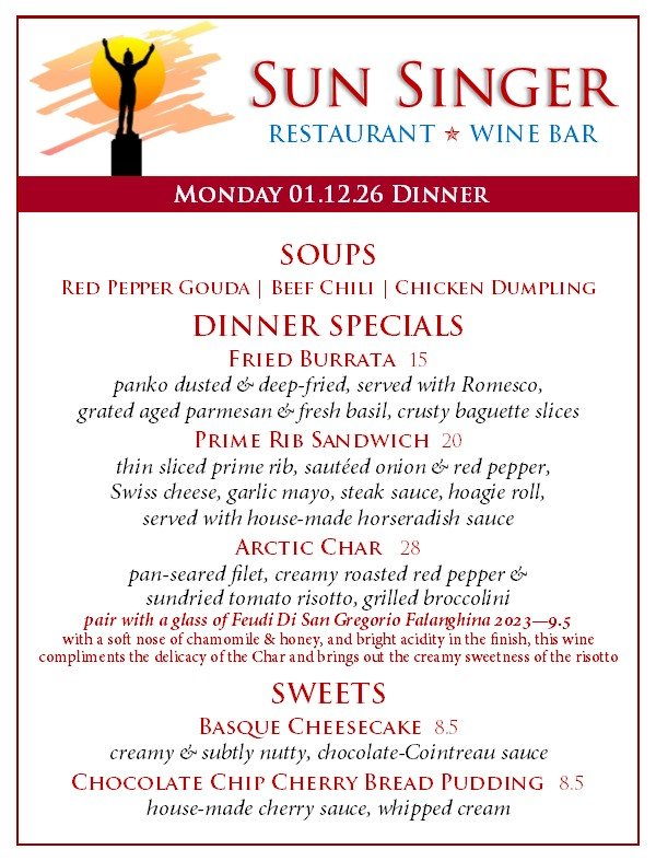 Monday, January 12th Dinner OYSTER WEEK!! Starts January 16th- ORDER ONLINE THROUGH TOAST! - Rick CarbaughJanuary 12, 2026 Facebook0 Twitter Pinterest0 0 Likes