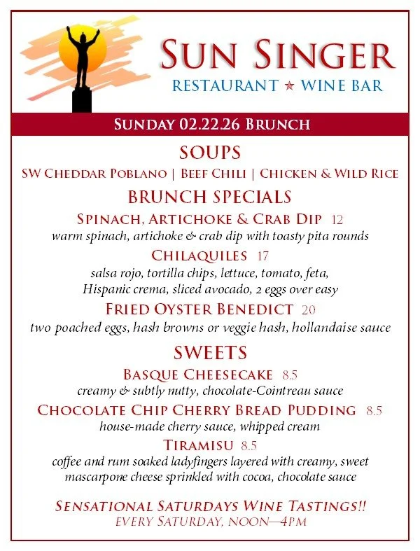 Sunday, February 22nd Brunch - ORDER ONLINE THROUGH TOAST! - Rick CarbaughFebruary 22, 2026 Facebook0 Twitter Pinterest0 0 Likes