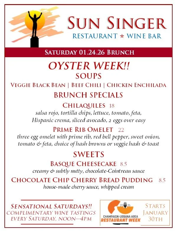 Saturday, January 24th Brunch Oyster week!! IS now!JANUARY 16th - 24th- ORDER ONLINE THROUGH TOAST! - Rick CarbaughJanuary 24, 2026 Facebook0 Twitter Pinterest0 0 Likes