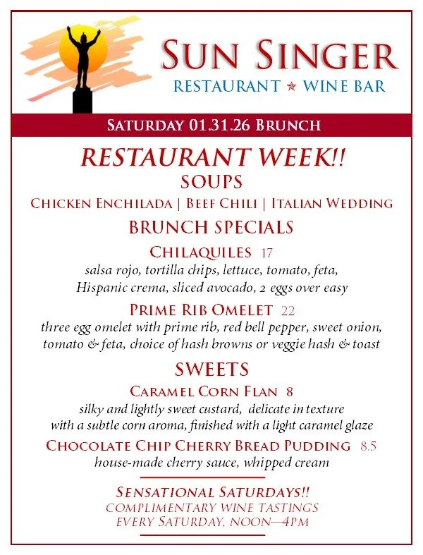 Saturday, January 31st Brunch restaurant week! JAN. 30th - feb. 7th- ORDER ONLINE THROUGH TOAST! - Rick CarbaughJanuary 31, 2026 Facebook0 Twitter Pinterest0 0 Likes