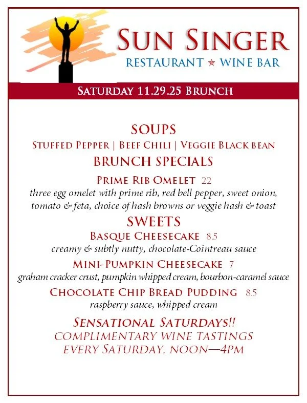 Saturday, November 29th Brunch heck yes, we’re open… and waiting for you!- ORDER ONLINE THROUGH TOAST! - Rick CarbaughNovember 29, 2025 Facebook0 Twitter Pinterest0 0 Likes