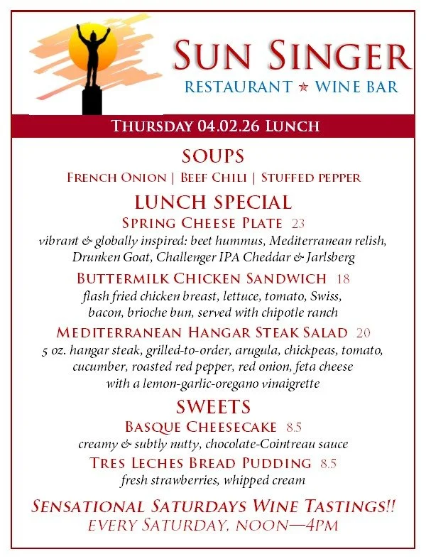 Thursday, April 2nd Lunch EASTER IS APRIL 5TH!- ORDER ONLINE THROUGH TOAST! - Rick CarbaughApril 2, 2026 Facebook0 Twitter Pinterest0 0 Likes