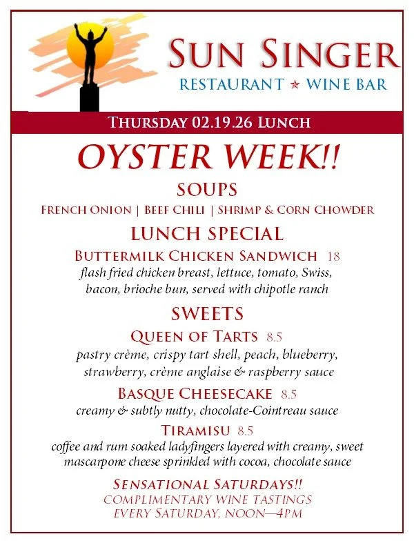 Thursday, February 19th Lunch Oyster week! februARY 13th - 21st- ORDER ONLINE THROUGH TOAST! - Rick CarbaughFebruary 19, 2026 Facebook0 Twitter Pinterest0 0 Likes