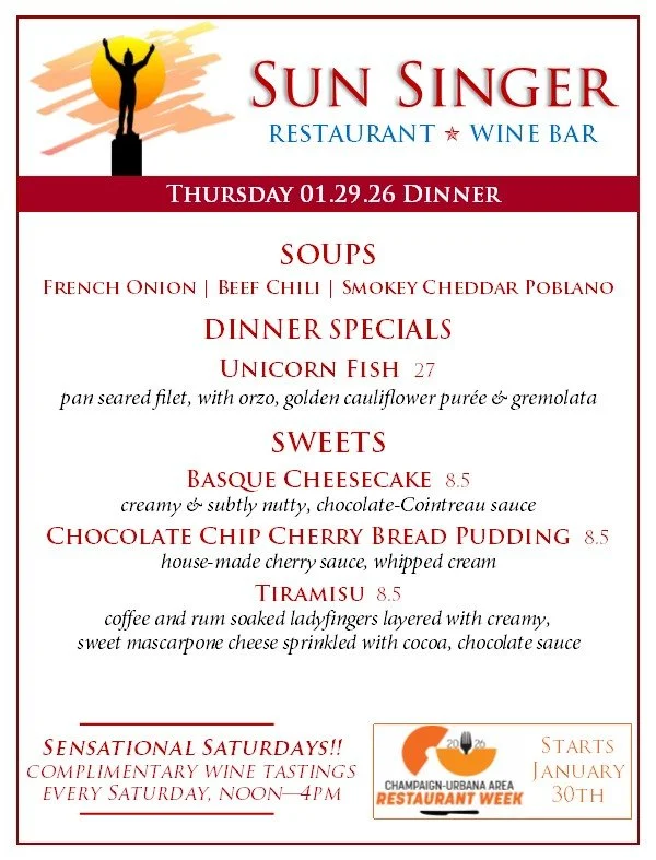 Thursday, January 29th Dinner restaurant week starts this friday!JAN. 30th - feb. 6th- ORDER ONLINE THROUGH TOAST! - Rick CarbaughJanuary 29, 2026 Facebook0 Twitter Pinterest0 0 Likes