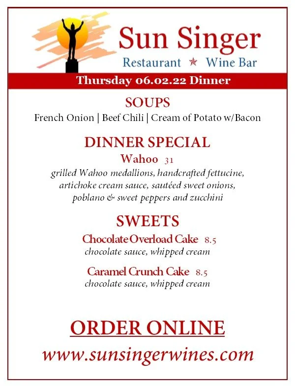 Weekly highlights of upcoming tastings, special events, menu changes & new and featured products!