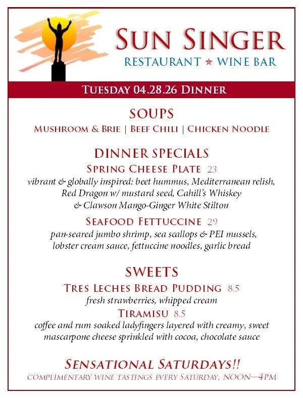 Tuesday, April 28th Dinner - ORDER ONLINE THROUGH TOAST! - Rick CarbaughApril 28, 2026 Facebook0 Twitter Pinterest0 0 Likes