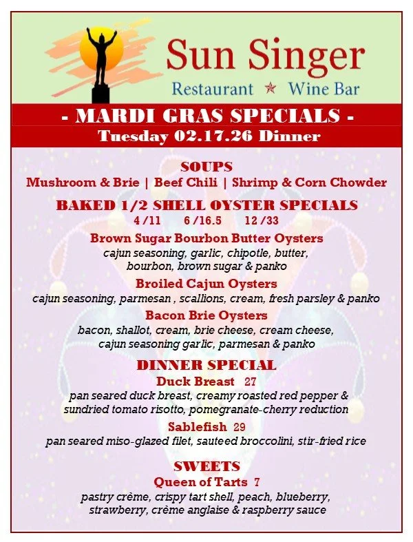 Tuesday, February 17th Dinner Oyster week! februARY 13th - 21st- ORDER ONLINE THROUGH TOAST! - Rick CarbaughFebruary 17, 2026 Facebook0 Twitter Pinterest0 0 Likes