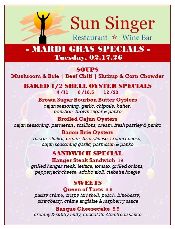 Tuesday, February 17th Lunch Oyster week! februARY 13th - 21st- ORDER ONLINE THROUGH TOAST! - Rick CarbaughFebruary 17, 2026 Facebook0 Twitter Pinterest0 0 Likes