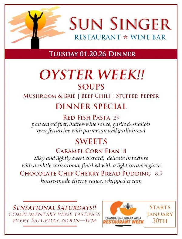 Tuesday, January 20th Dinner Oyster week!! IS now!JANUARY 16th - 24th- ORDER ONLINE THROUGH TOAST! - Rick CarbaughJanuary 20, 2026 Facebook0 Twitter Pinterest0 0 Likes