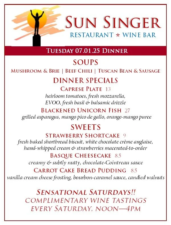 Tuesday, July 1st Dinner OYSTER WEEK! JULY 18TH - 26TH- ORDER ONLINE THROUGH TOAST! - Rick CarbaughJuly 1, 2025 Facebook0 Twitter Pinterest0 0 Likes
