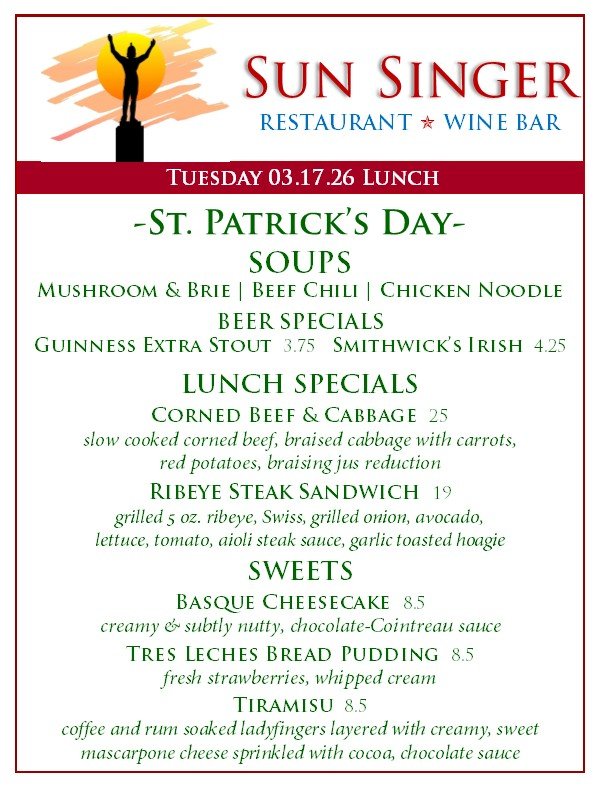 Tuesday, March 17th Lunch St. patrick’s day, march 17thOYSTER WEEK! March 20 - 28th- ORDER ONLINE THROUGH TOAST! - Rick CarbaughMarch 17, 2026 Facebook0 Twitter Pinterest0 0 Likes