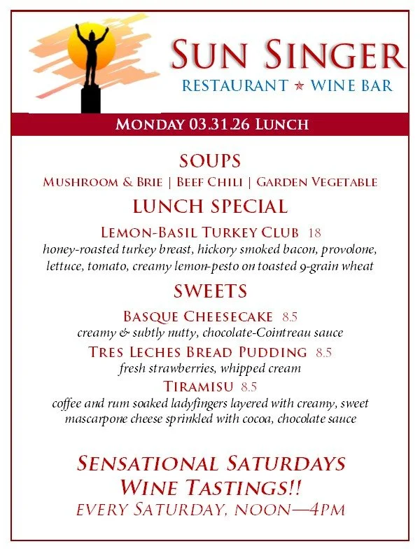 Tuesday, March 31st Lunch EASTER IS APRIL 5TH!- ORDER ONLINE THROUGH TOAST! - Rick CarbaughMarch 31, 2026 Facebook0 Twitter Pinterest0 0 Likes