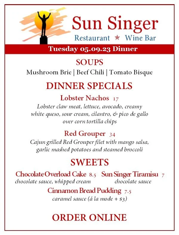 Tuesday, May 9th Dinner OYSTER WEEK! MAY 19TH - MAY 27TH- NEED DELIVERY? ORDER THROUGH TOAST! - Rick CarbaughMay 9, 2023 Facebook0 Twitter Pinterest0 0 Likes