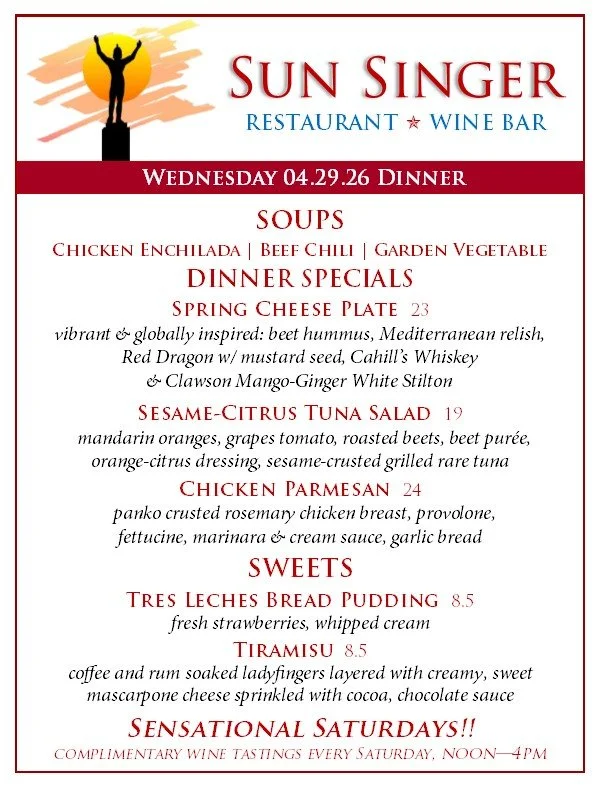 Wednesday, April 29th Dinner - ORDER ONLINE THROUGH TOAST! - Rick CarbaughApril 29, 2026 Facebook0 Twitter Pinterest0 0 Likes