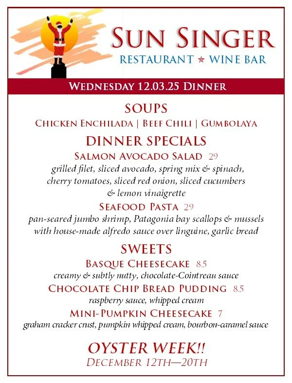 Wednesday, December 3rd Dinner Oyster week!!December 12th - 20th- ORDER ONLINE THROUGH TOAST! - Rick CarbaughDecember 3, 2025 Facebook0 Twitter Pinterest0 0 Likes