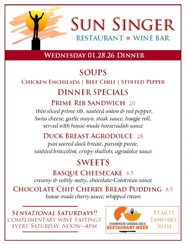 Wednesday, January 28th Dinner restaurant week starts this friday!JAN. 30th - feb. 7th- ORDER ONLINE THROUGH TOAST! - Rick CarbaughJanuary 28, 2026 Facebook0 Twitter Pinterest0 0 Likes