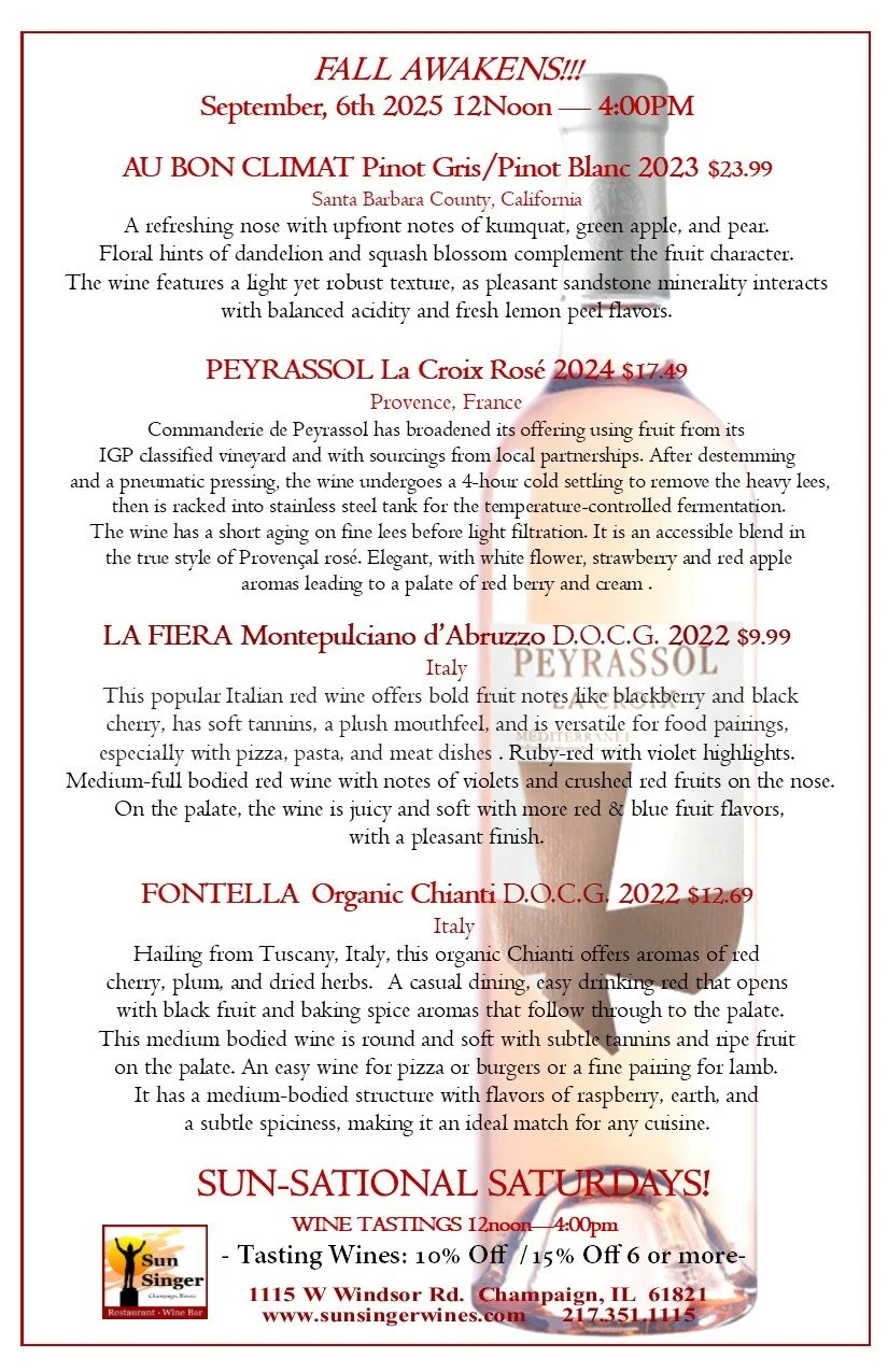 SUN -SATIONAL COMPLIMENTARY WINE TASTING SATURDAY SEPTEMBER 6TH 2025 FROM 12-NOON TO 4PM !!!!! saturday tasting! 12noon - 4:00pm-Save 15% on purchases of 6 or more Tasting Wines- Rick CarbaughSeptember 5, 2025 Facebook0 Twitter Pinterest0 0 Likes