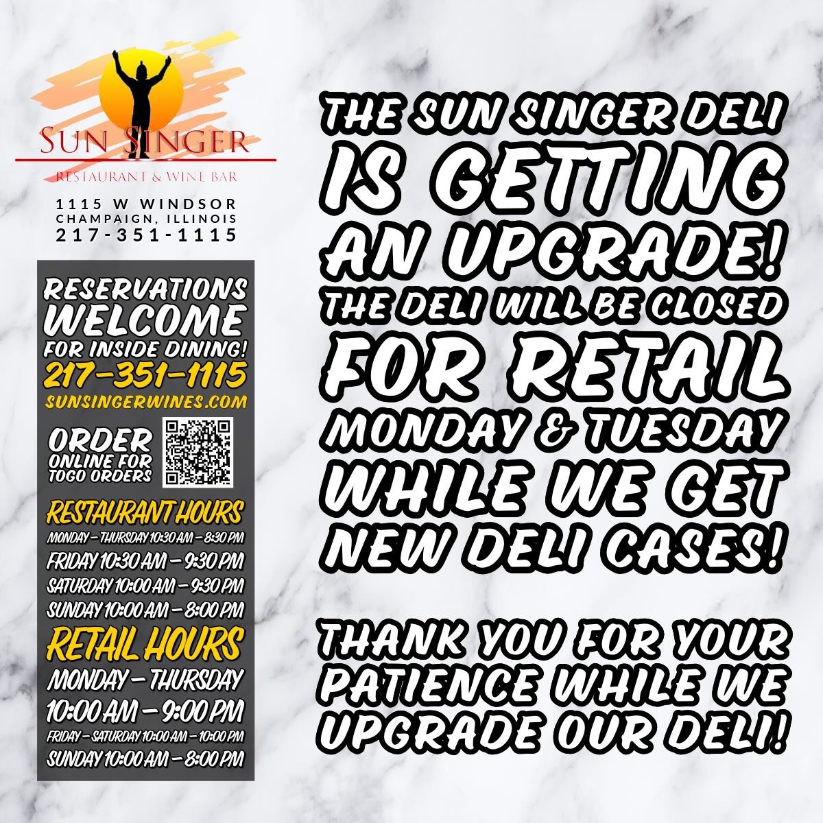 “Sun Singer appeared on the scene when this part of town was desperately in need of a great cafe/wine bar type of place. Years later it is still booming and I love to go there for lunch, happy hour, you name it. The food is high quality and the service is great. We also love getting food (and wine) to go from there. The staff is so helpful at putting together good cheese and wine pairings.”